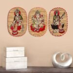 Bamboo Hand Crafted Wall Hangings Of The Trio Of Ganesh Ji, Laxmi Ji And Sarwasti Ji Painting For Home Decor