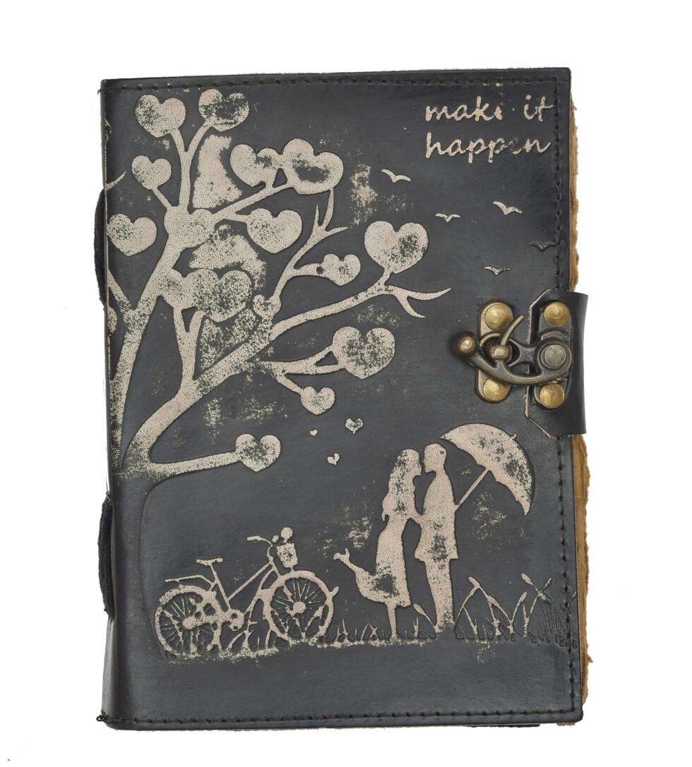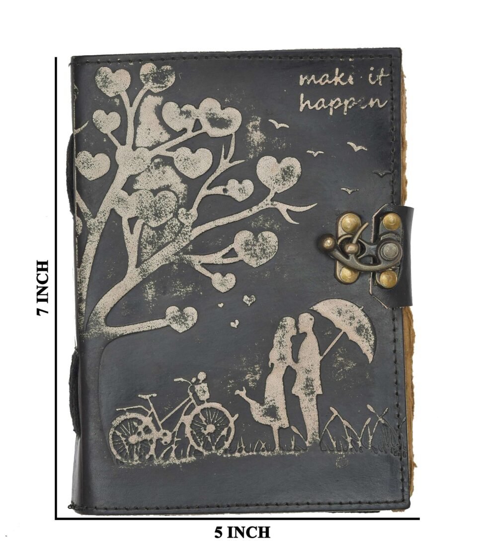 vintage handmade leather journal. Crafted with genuine leather, it radiates authenticity and charm, perfect for those who appreciate classic craftsmanship. The premium antique lock closure adds a touch of elegance and security, ensuring your thoughts and memories are safeguarded within its pages. Inside, you’ll discover 200 brown handmade pages, providing ample space for your musings, sketches, and stories to unfold. Whether it’s for journaling, sketching, or planning, this versatile journal is a timeless companion for your creative endeavors. Treat yourself or a loved one to this exquisite piece, a celebration of tradition and creativity