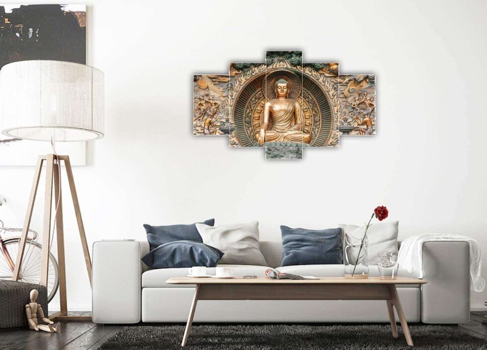 Buddha Set of Five 3D Framed Paintings for Wall Decoration – Ideal for Home, Living Room, and Bedroom (75 x 43 CM)