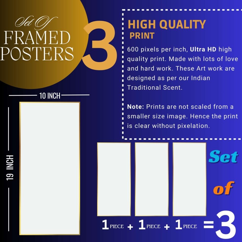 Set of Three large Wall Paintings for Wall Dacoration Golden Framed Wall Paintings for Living Room & Bedroom Wall Art for Home Decoration & Office Wall Décor (14×11 inch CH-LGD3-2)